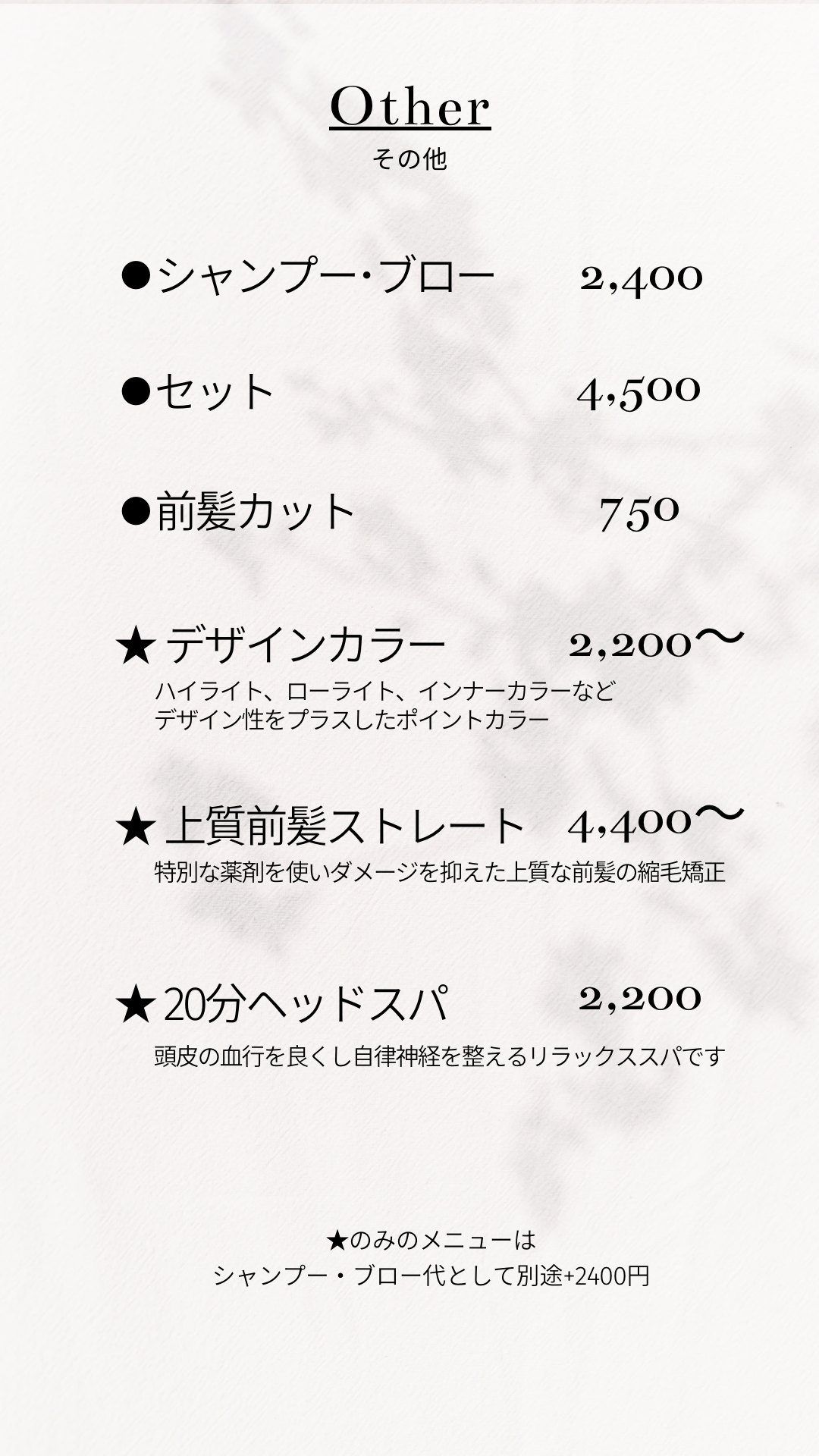 ※ヘアのご予約とは別々の窓口となっております